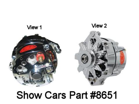 63-70 Chrome Powermaster alternator 70 amp externally regulated fan and V pulley included