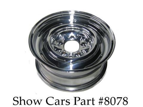 58-64 OEM 14X6 steel wheel chrome works with 11in disk brakes