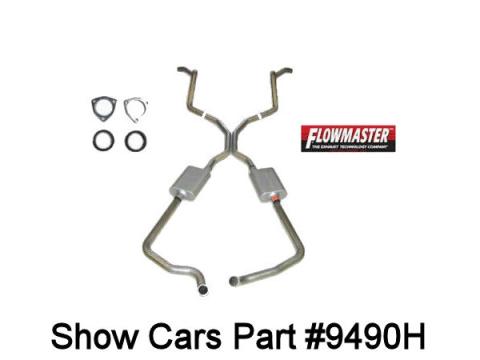 348/409 Dual exhaust aluminized steel with 2.5in x2in 2 chamber Flow Master mufflers with 2pc tail pipes for high performance manifolds